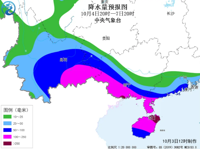 受其影响,3日夜间至7日,南海中北部海域及华南沿海有8到11级风;海南岛中北部、广东西南部、广西南部、云南东南部先后有暴雨或大暴雨,局地特大暴雨,将对假期旅游、交通等造成严重影响。